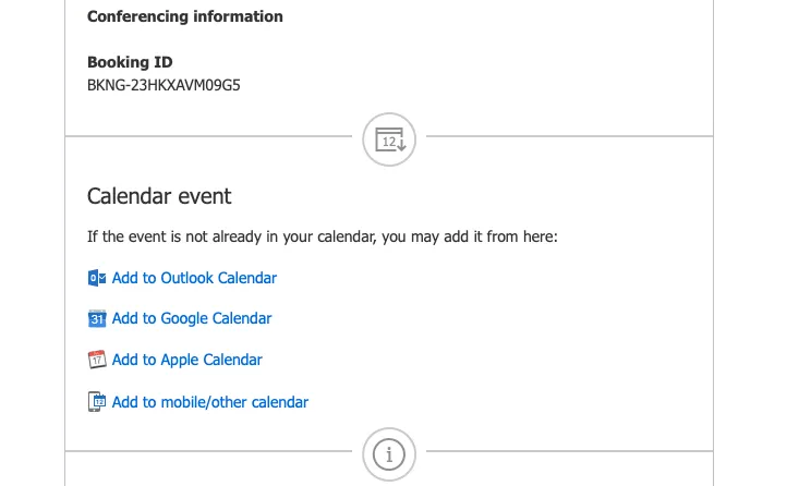 2. Find the Calendar Invite: In the confirmation email, Scroll down and look for the calendar invite. Add the event to your preferred personal calendar.